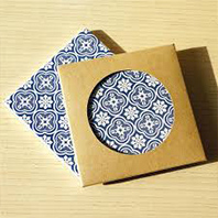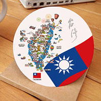 - 牛皮紙盒包裝(紙盒正面有開孔,可秀出杯墊圖案)